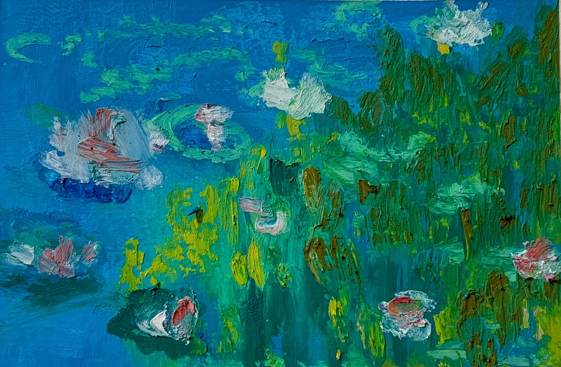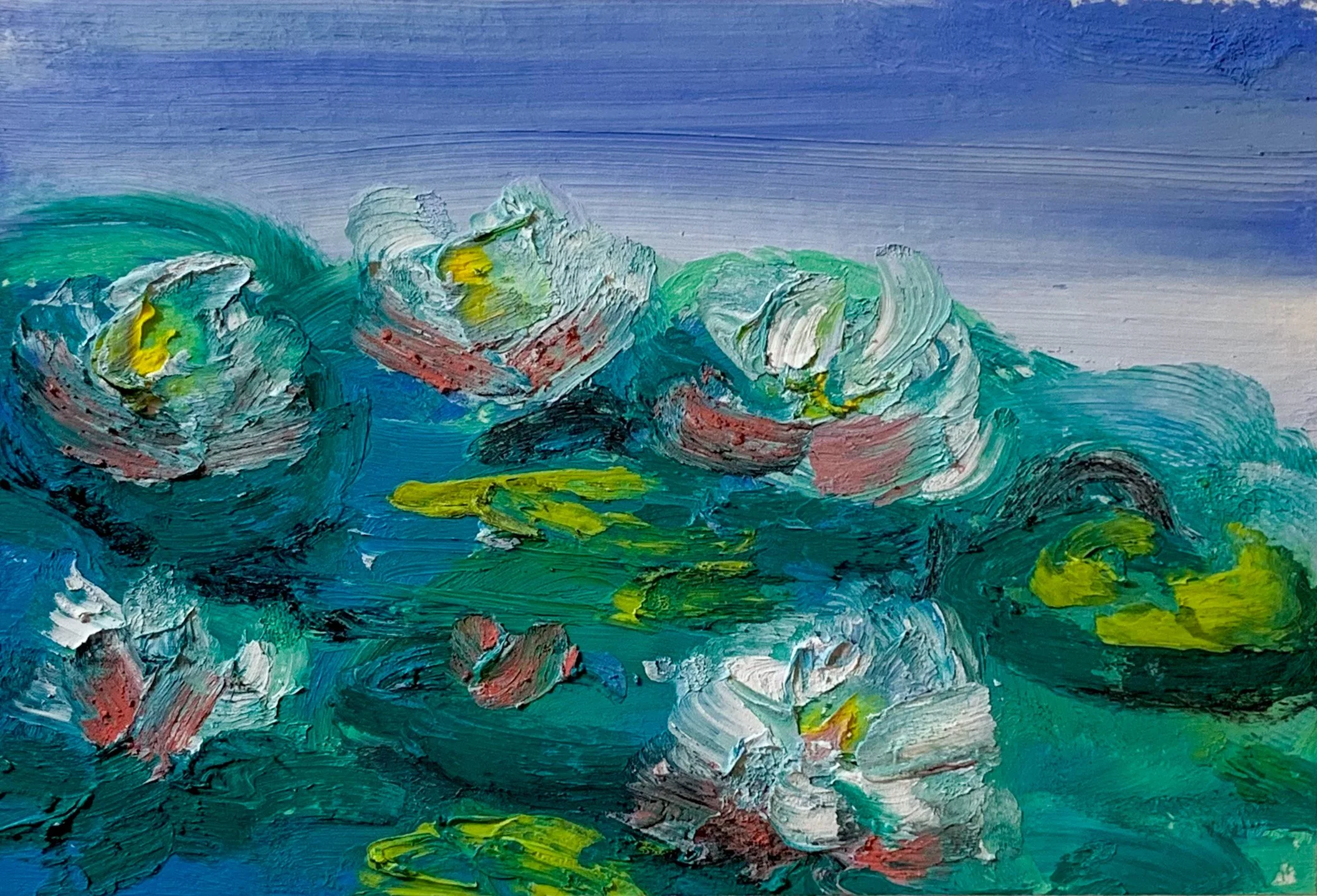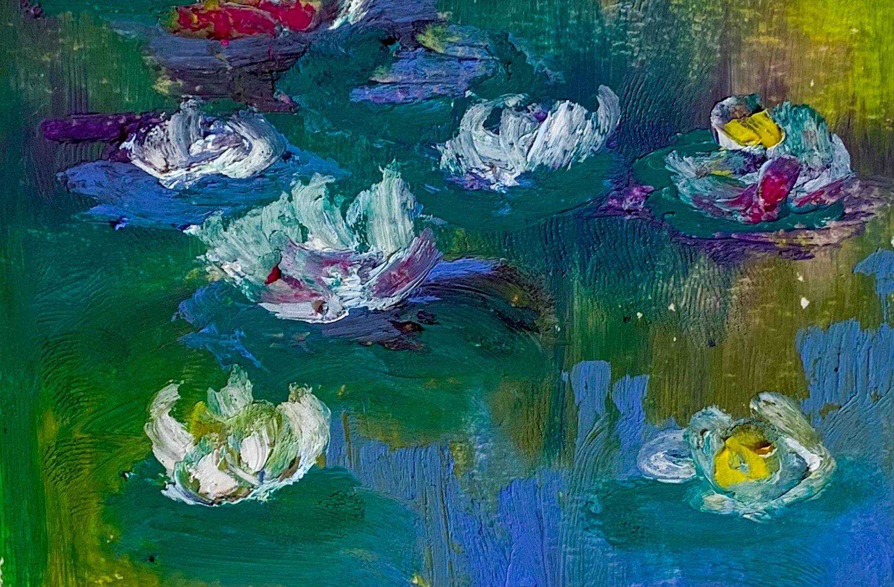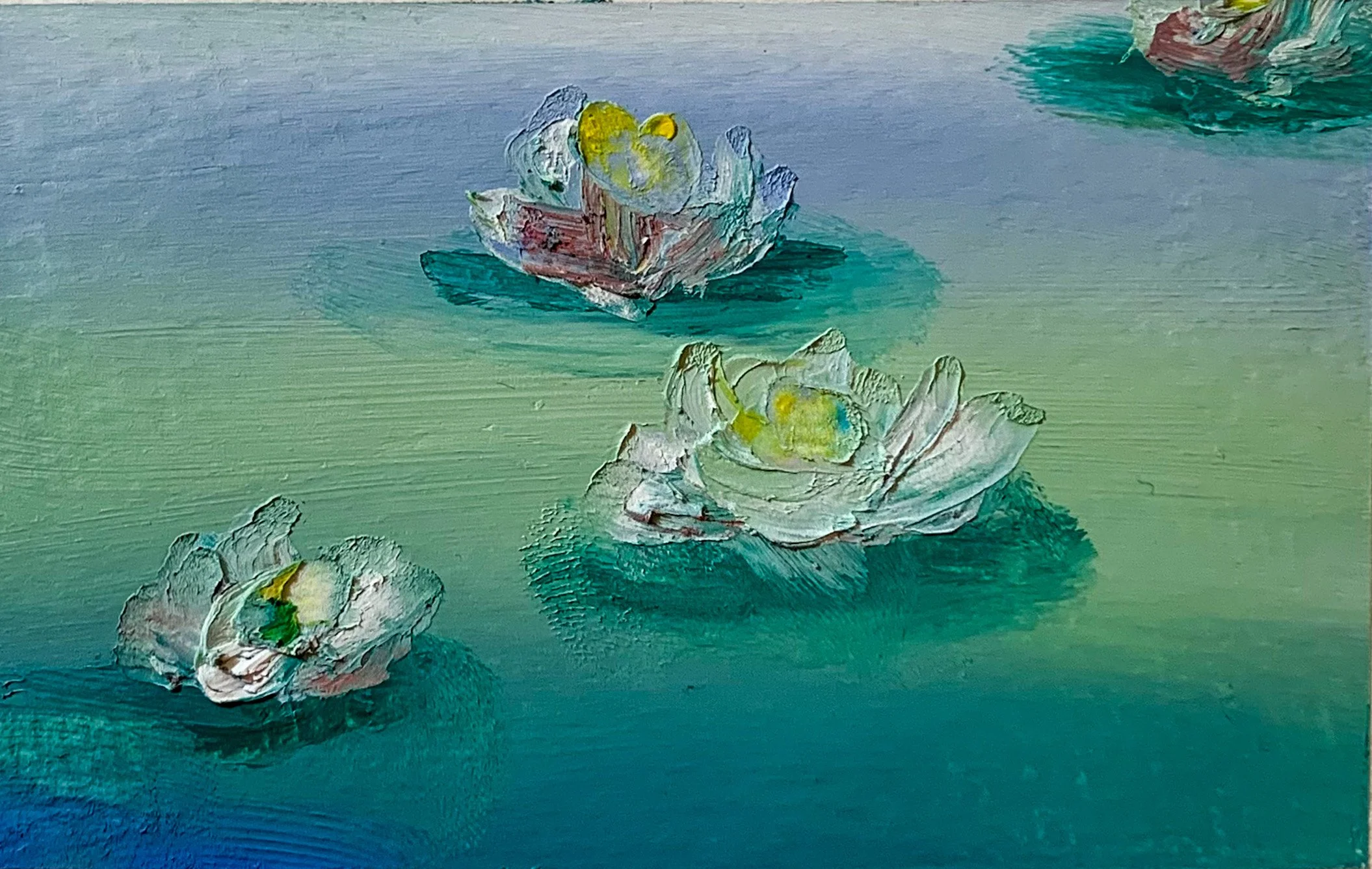 Lily Pads 1, 2021, 2.5 x 3.5 inches, oil pastel SOLD