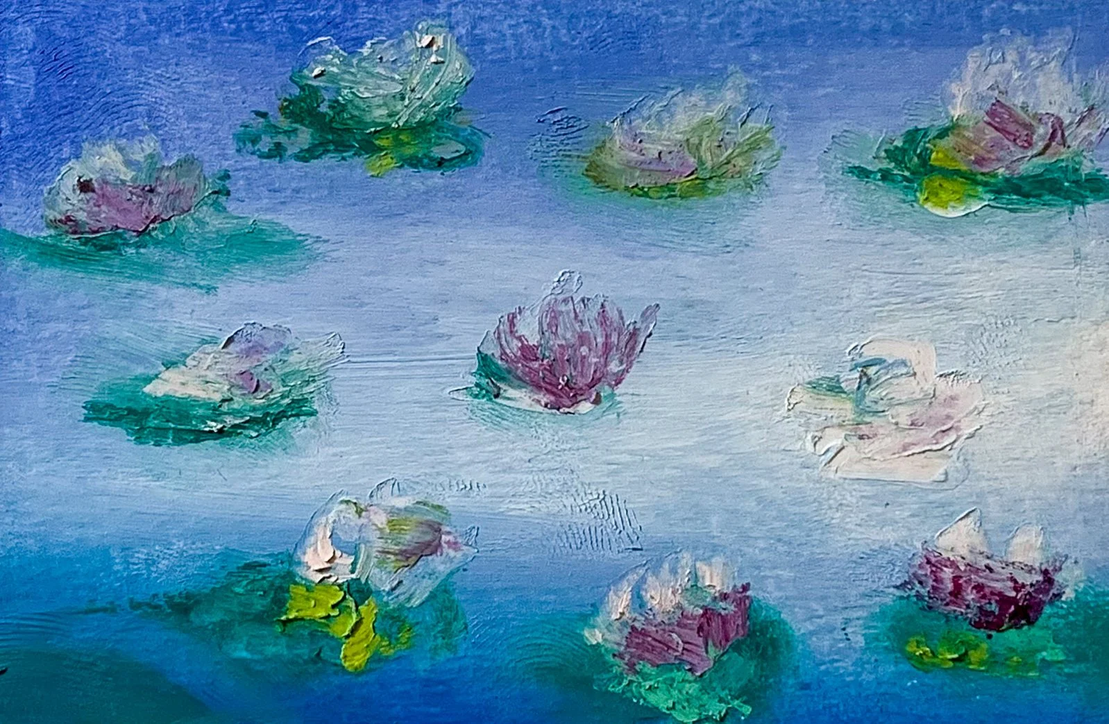 Lily Pads 2, 2021, 2.5 x 3.5 inches, oil pastel SOLD