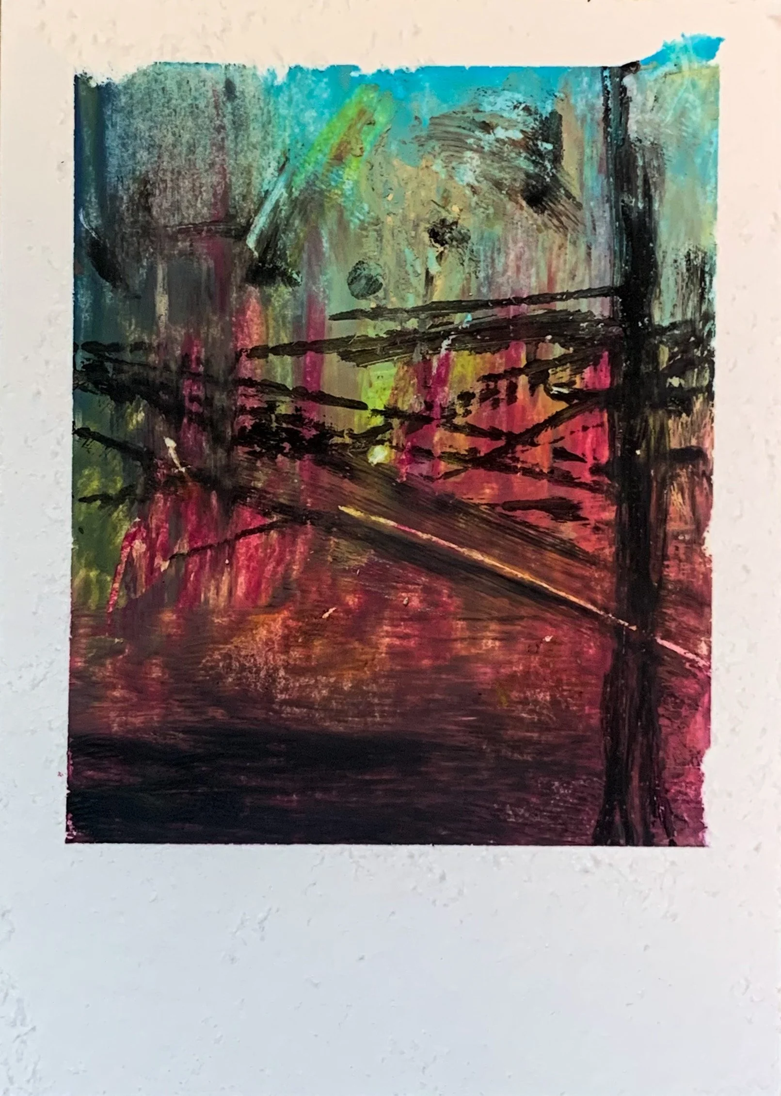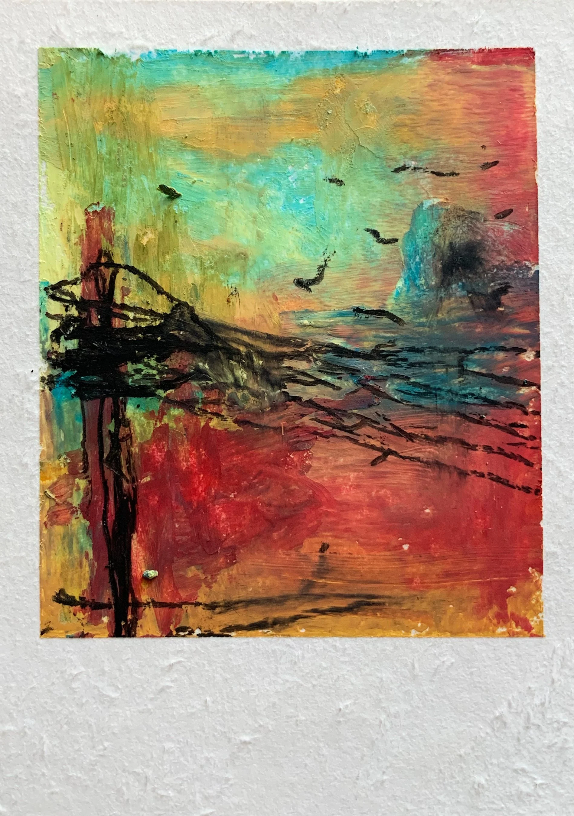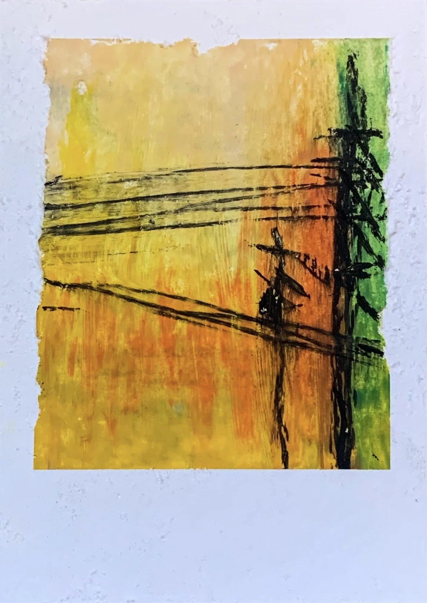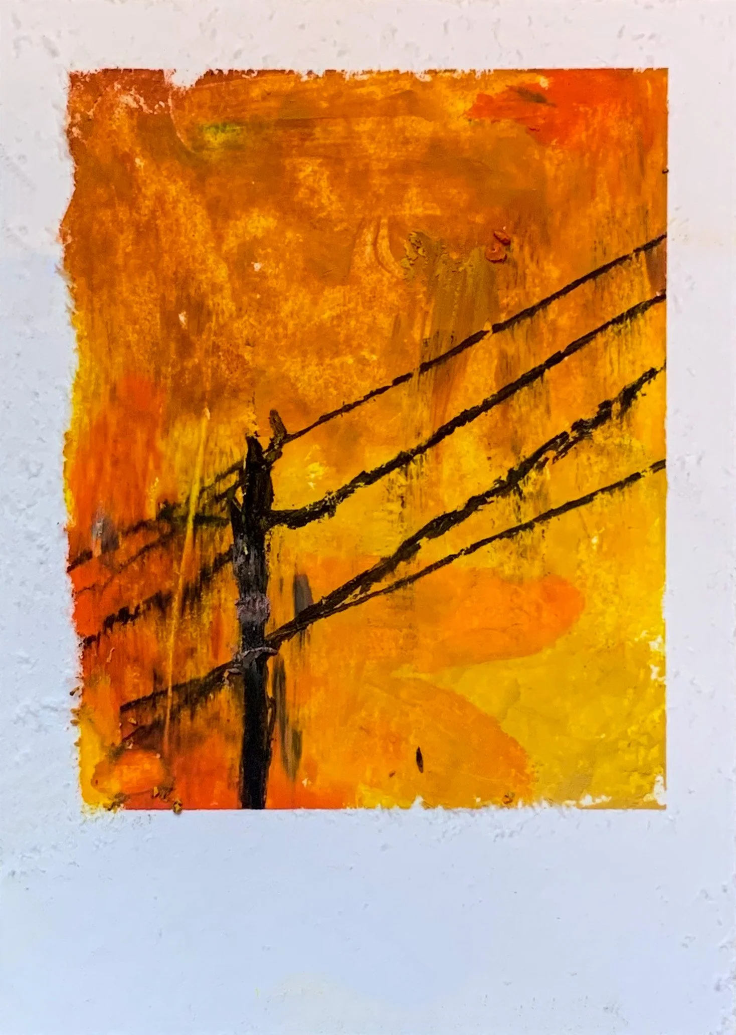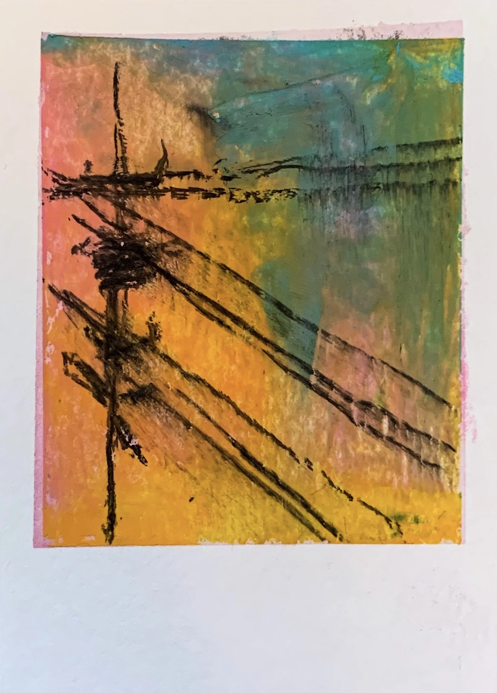 Power Lines 2, 2021, 2.5 x 3.5 inches, oil pastel SOLD