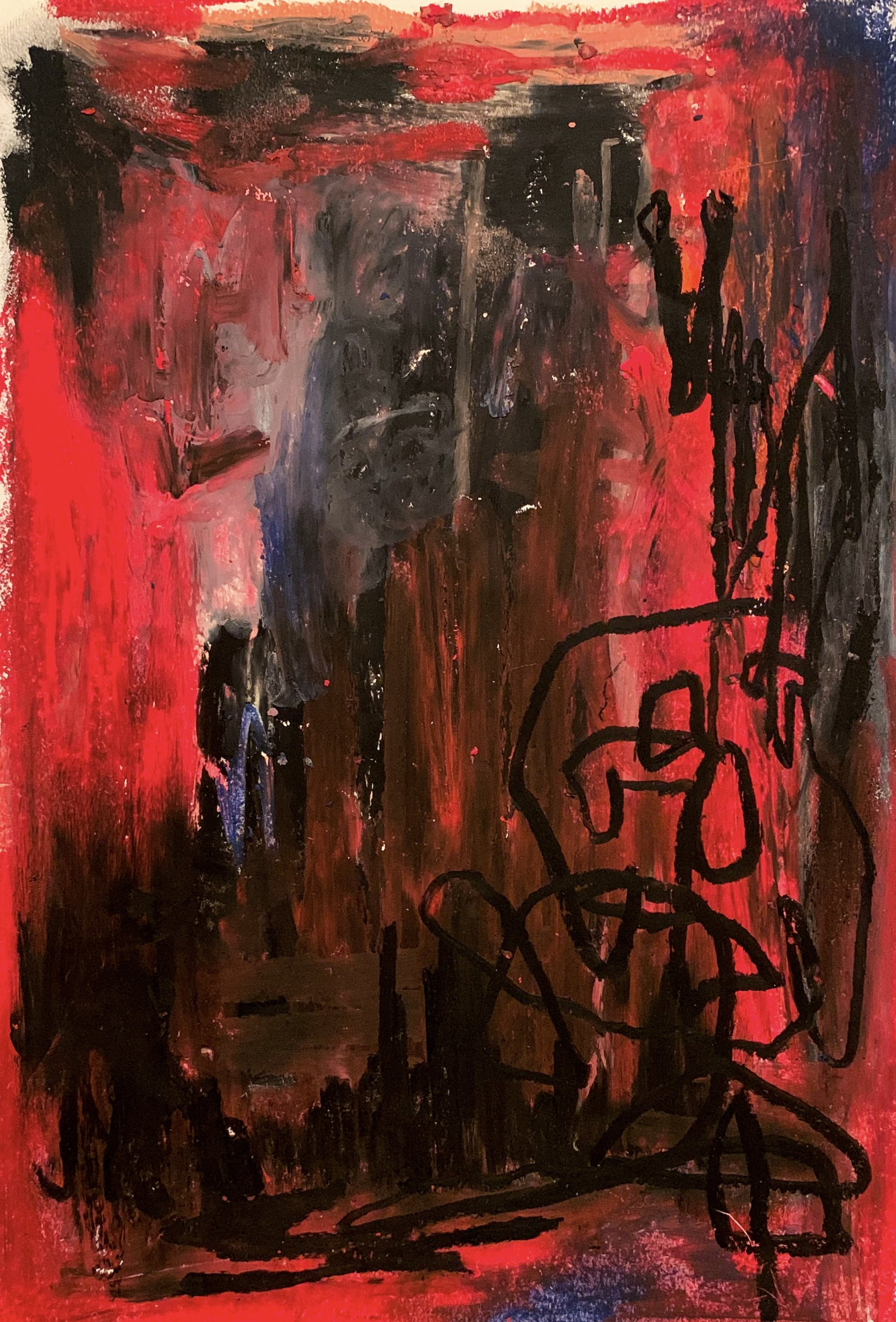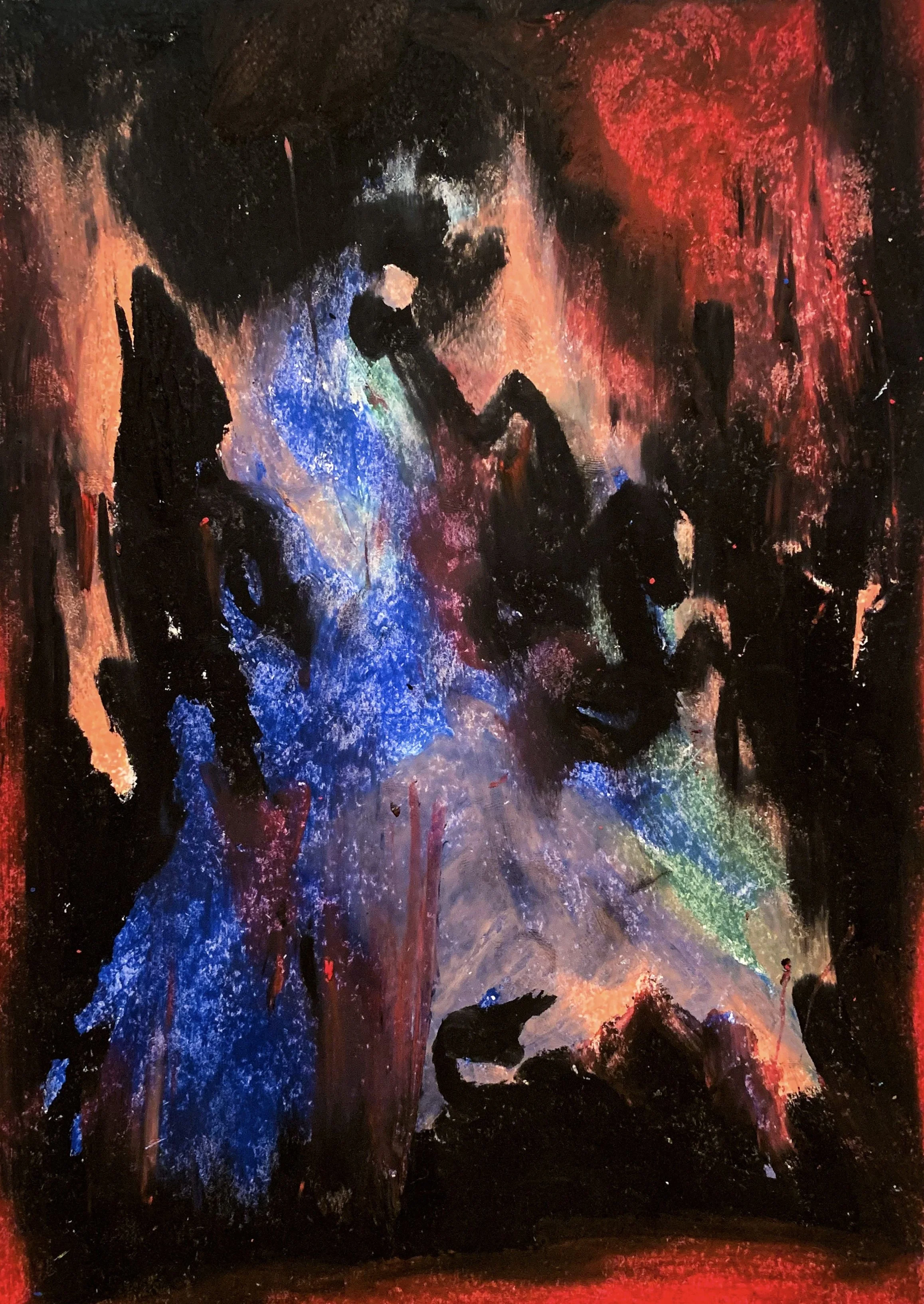 The Dark Has Feet, 2021, 7 x 5.5 inches, oil pastel on stonehenge, AVAILABLE